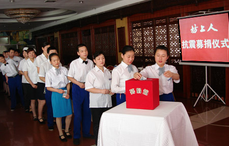 “坊上人”员工踊跃向汶川灾区人民献爱心