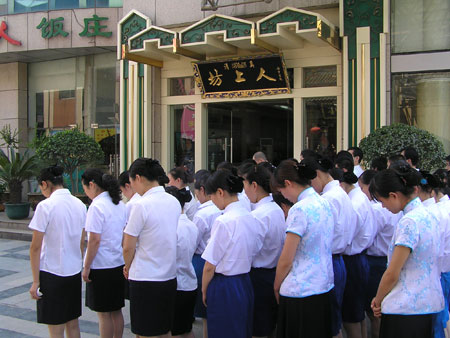 在15日举行的《坊上人抗震募捐仪式》上,“坊上人”饭庄所属各店的员工们都积极响应公司的号召,踊跃募捐,大家你10元他20,她50我100,场面热烈,十分感人,员工们含着热泪动情地说:“这几天,我们特别关注灾区抢险的报道,这场灾难太大了,那么多鲜活的生命、可爱的孩子被夺去了生命,太惨了!我们的捐款数额不算多,可却是我们的一片心意,涓涓细流,汇聚成海,只要全中国人每人都献出一点儿爱,再大的困难也压不跨我们中国人”。经工作人员当场清点,共收到善款5940元。盛志明董事长、刘西艳总经理被员工们的无私爱心深深感动,更是拿出了大额捐款,使捐款总额增至20000元。当天下午,他们还派人将这笔饱含“坊上人“全体员工对四川汶川地震灾区人民一片爱心的2万元善款专程送到了西安市红十字会,负责接待的工作人员对“坊上人”的善举给予了很高评价:“年初雪灾时,你们‘坊上人’就走在了全市人民的前面,这次又是餐饮界最早送来的很了不起,我代表灾区人民感谢你们!请放心,我们会尽快将捐款汇往灾区。”