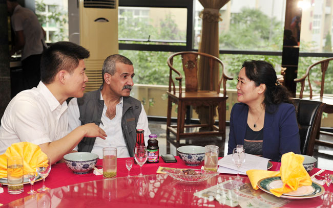 中国外文出版社阿语专家阿巴斯先生、《今日中国》杂志社阿文部记者彭楚云先生对“坊上人”总经理刘西艳女士做现场访谈