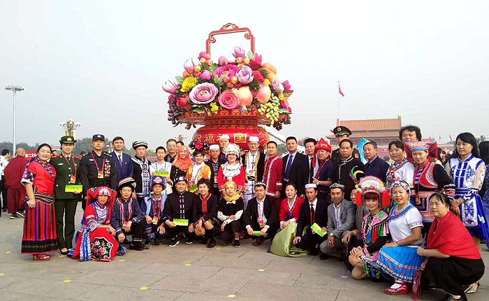 刘西艳(前中)等全国少数民族参观团部分成员合影留念