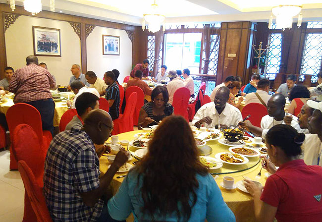 2018年7月9日,由“联合国工业发展组织”举办、三十多个国家能源官员组成的国际太阳能培训班一行40余人,在有关部门陪同下,来陕参观考察并光临“一带一路”特色餐饮接待单位、“中华餐饮名店”、“陕西省著名商标”——西安坊上人清真饭庄电子步行街店。外宾们对独具陕西风味特色的“坊上人”美食连连夸赞,临行还意犹未尽地选购了“坊上人”特色零售食品和礼盒。