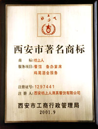 2001年9月,经西安市工商行政管理局、西安市著名商标认定委员会认定,全市103件商标为“西安市著名商标”,“坊上人”榜上有名。